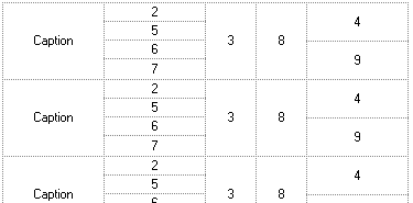 The CRD string `"Caption"[a=17],(2/5/6/7),(3,8),(4/9)`generates the following layout: